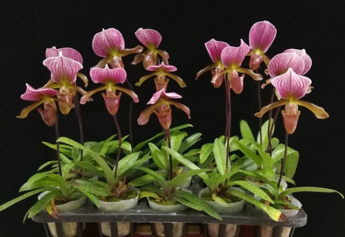 “紫旗兜兰”、“紫光兜兰”和“紫君兜兰”的叶片斑纹、花色及花朵条纹各具特色,均具有较高的观赏价值且抗性强,适合华南地区设施栽培。
