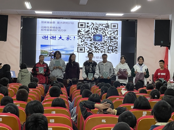 中国科学院广州地球化学研究所赵太平研究员介绍:“我们主要宣传矿产资源,地球科普知识,同时兼顾到小孩子的一些学习兴趣,我们请来了中国地质大学(武汉)肖龙教授,他是行星科学专家。除了我们讲的矿产资源,地球科学,我们要兼顾到很多学生感兴趣的地方,根据需求找这样有科学特长的人,有这种专业知识的人来加盟到我们这个队伍来,所以我们队伍是有不同类型的不同专业知识背景的,不同单位的,当然是以国家承担重要科学计划的科学家为主,以中国科学院广州地球化学研究所为主,以矿产资源和地质科学为主,也兼顾到公共科普,希望学生热爱科学、热爱社会、热爱自然,成为祖国的建设者。”
